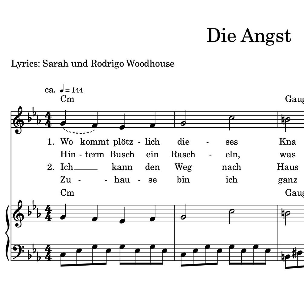Die Partitur mit Klavierbegleitung von Die Angst und zusätzlich ein Textblatt, zum Beispiel, für die Kinder zum mitlesen. Jeder Kauf entspricht eine Lizenz.